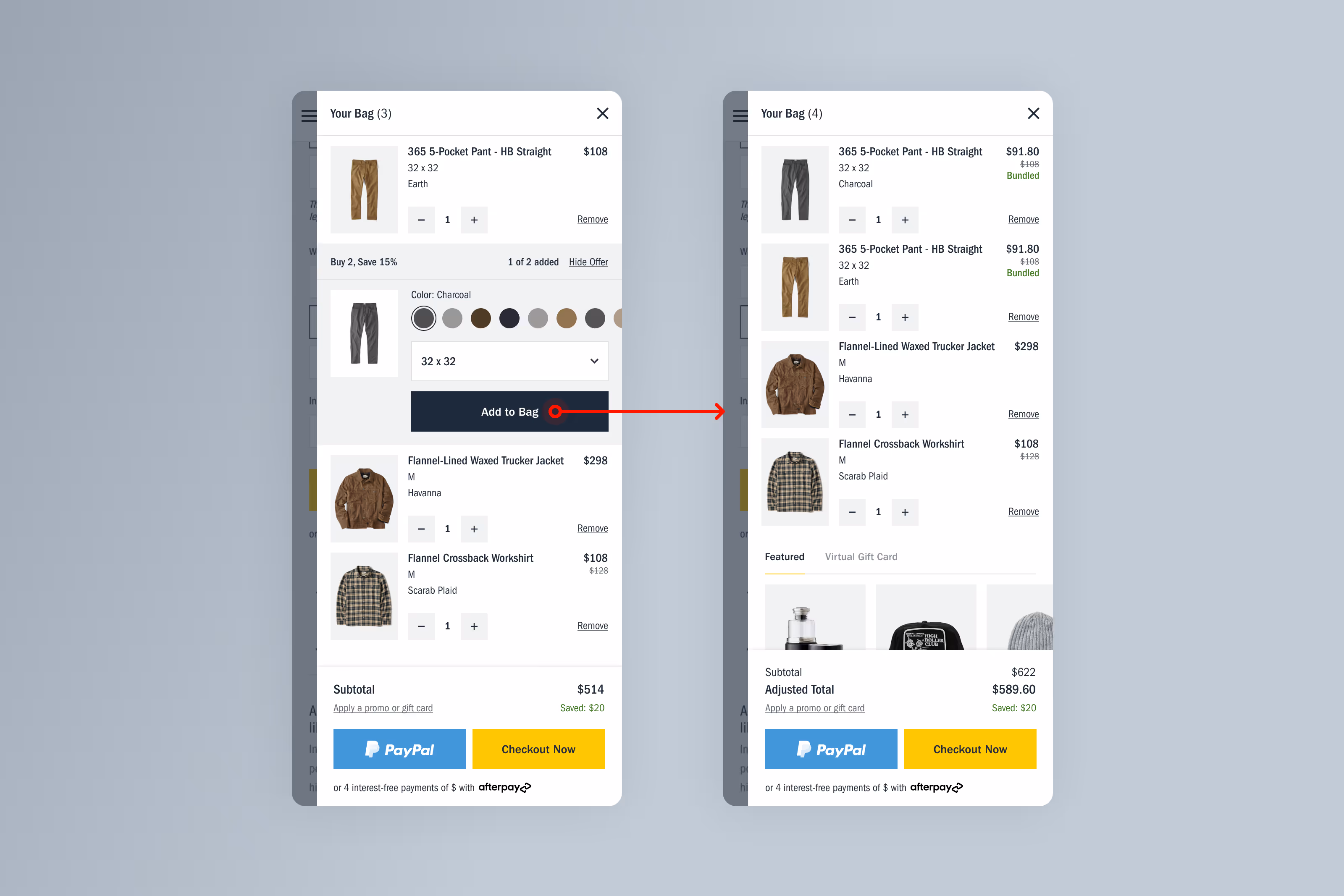 I led UX and UI design for the cart bundling initiative, owning the experience from early concept through final execution.