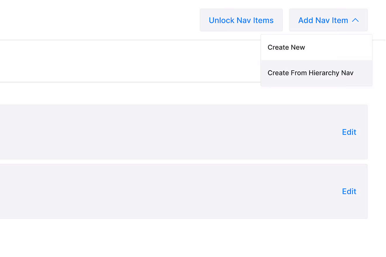 When creating a synced navigation item, editors can search existing hierarchies and dynamically pull content into standardized templates. This removed the need for duplicate work across systems and significantly reduced the effort required to keep navigation up to date.